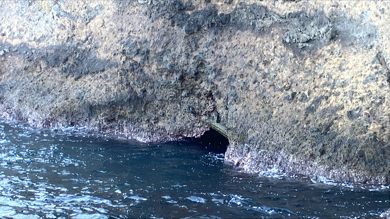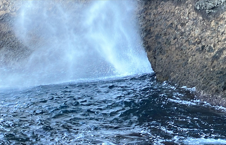 ~汐吹きは潮の干満によって断崖絶壁の洞穴から潮が吹き上がる現象~