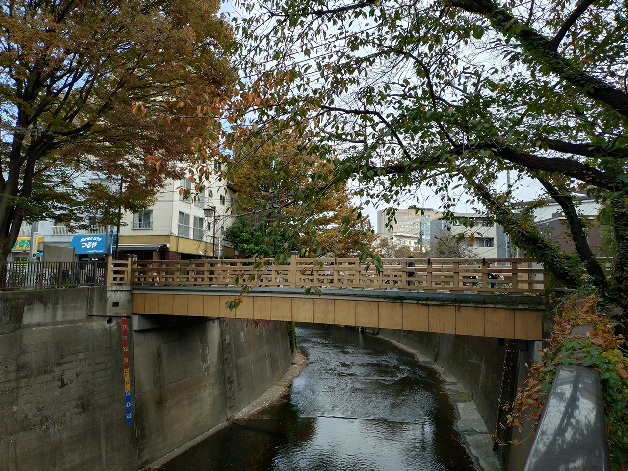 石神井川の両岸には桜の木がたくさんあり、春は桜がとてもキレイだそうです。(訪問は11月)