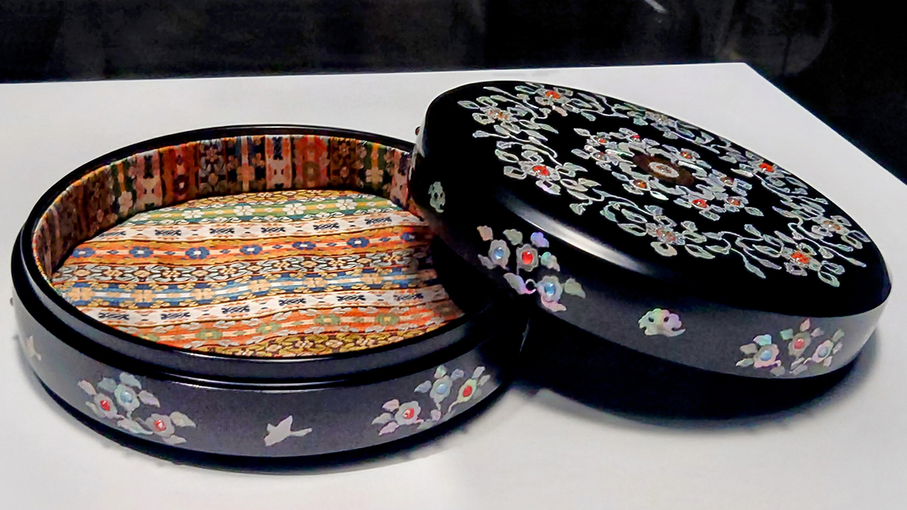・紺玉帯(こんぎょくのおび)という紺玉(=ラピスラズリ)で飾られた皮製のベルトを納めるための箱