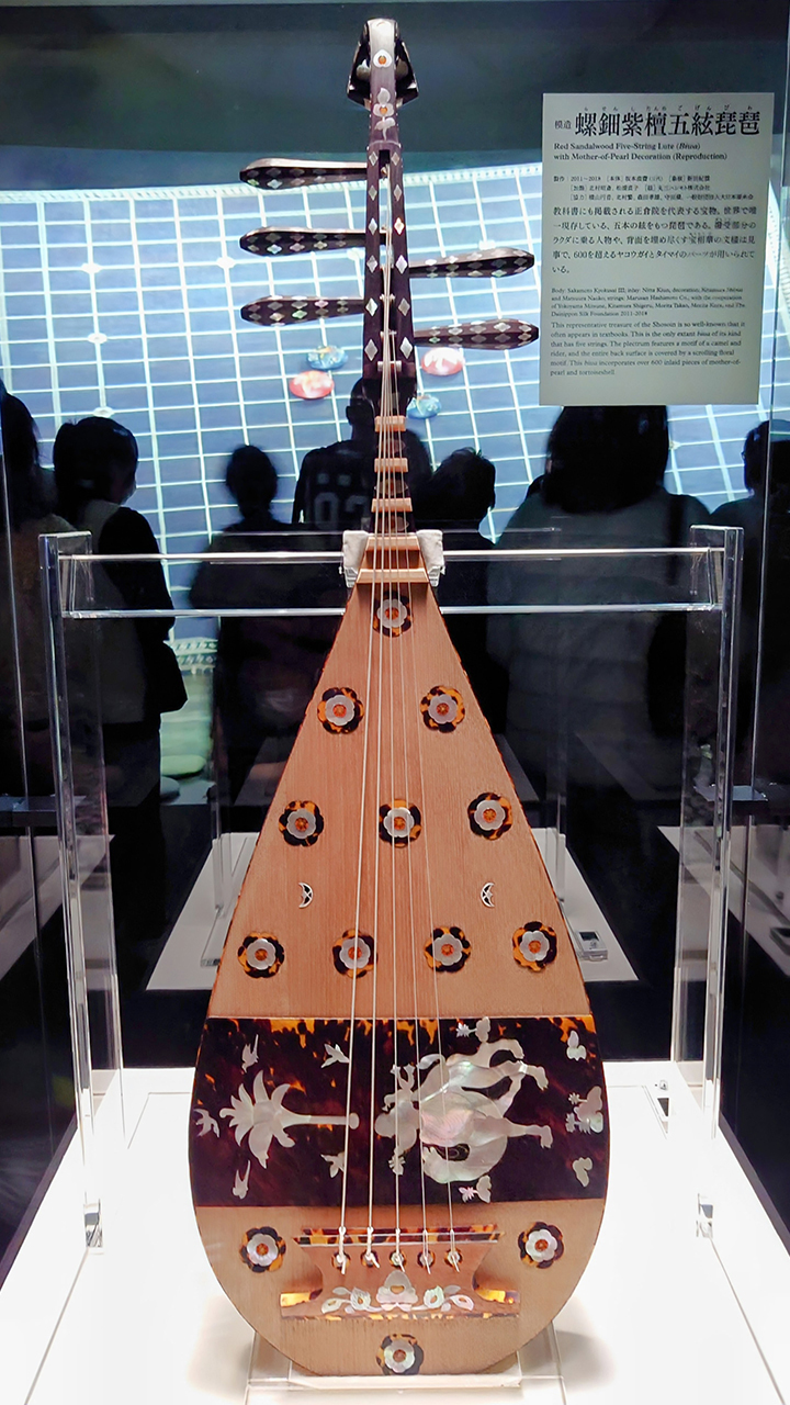 ・螺鈿(=夜光貝)で装飾された「紫檀(したん)」と呼ばれるローズウッド製の五弦琵琶